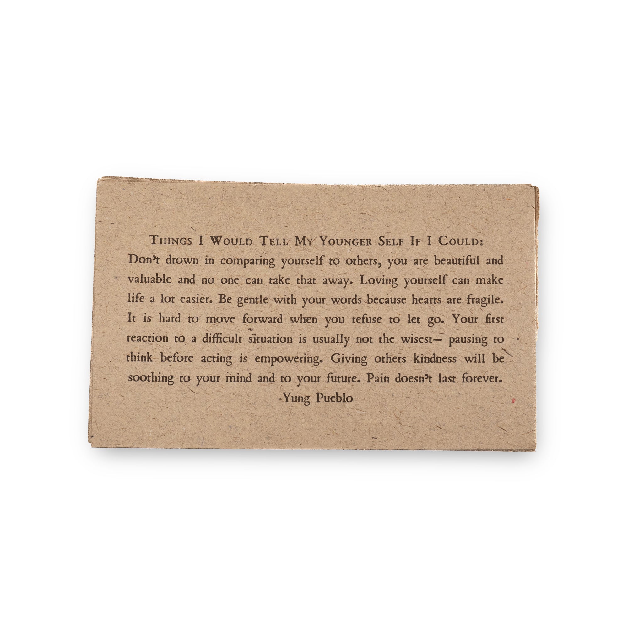 This set includes 50 assorted Sugarboo top favorite Gathered Thought quotes (some brand new quotes!) on handmade paper; each quote is of horizontal orientation.