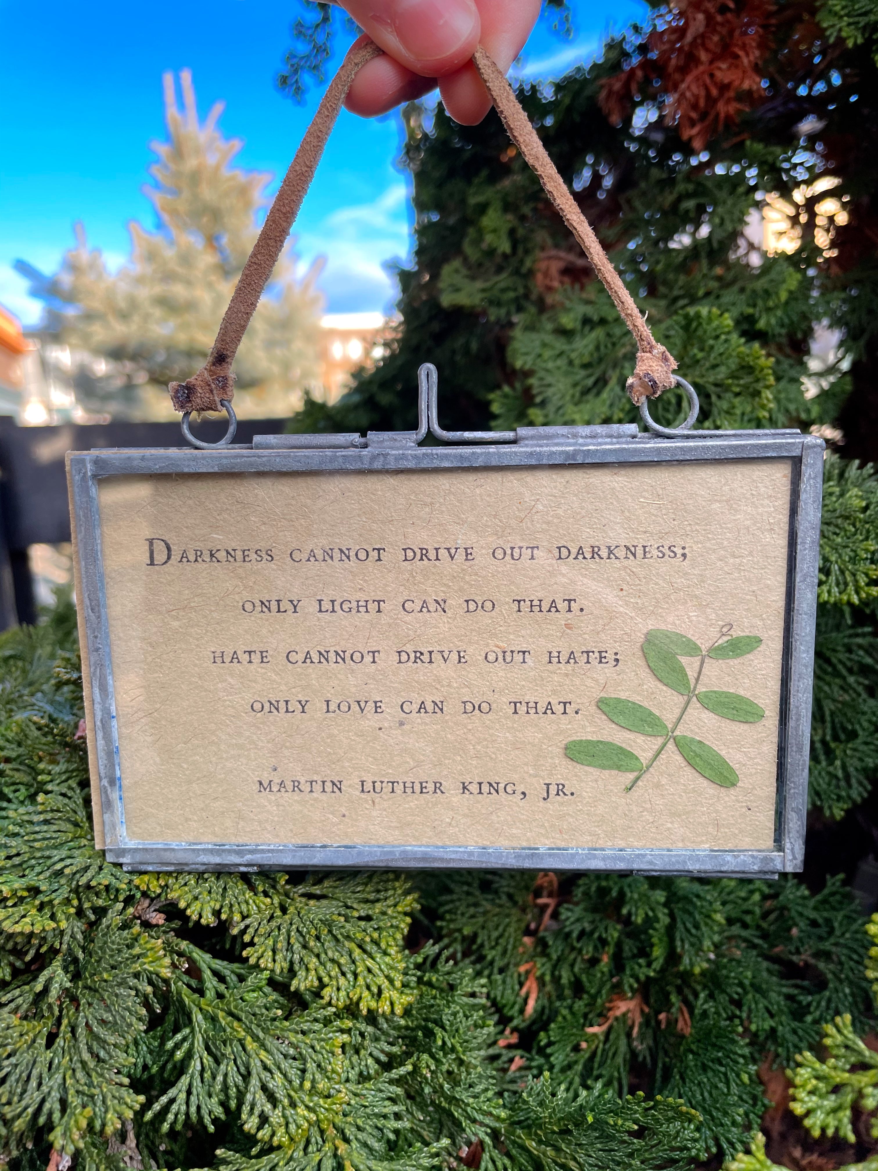 The perfect way to display our 365 Gathered Thoughts Cards! Our glass and zinc frames can be hung by nail or displayed by being propped up in any space. Find the Gathered Thought that speaks to you, frame it, and hang it in the perfect place to give you a daily reminder. This is one of our most popular gifts to give as you can find a gathered thought perfect for any situation!